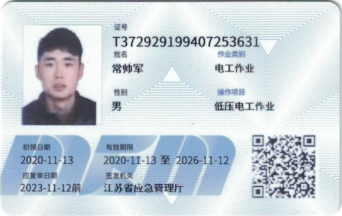 電工作業(yè)證-常帥軍